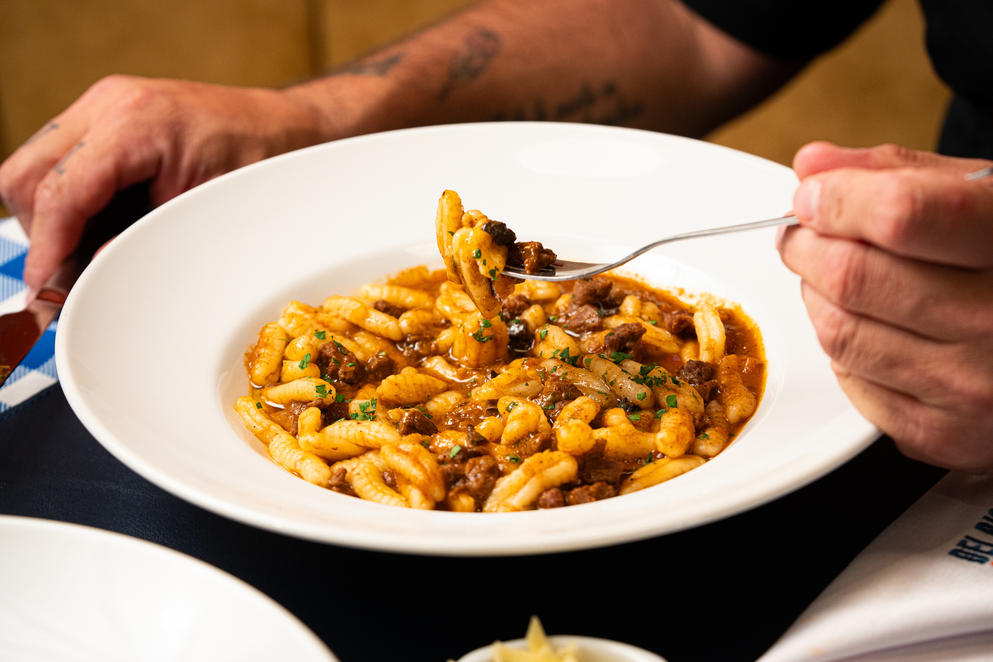 Los auténticos sabores de la gastronomía italiana se encuentran en Biasatti, el restaurante dirigido por los chefs Milton Bertoni y Stefanía Langford en Belgrano. Este proyecto nació como un homenaje a la abuela del chef, la nonna María, quien cocinaba pastas caseras para la familia y que luego él decidió replicar en su salón con sello gourmet y de autor. De elaboración artesanal, en cada preparación se utiliza sémola de trigo candeal, huevos de campo, ingredientes frescos, de primera calidad y sin aditivos. En su menú ofrecen distintas opciones y platos que se modifican por temporada, como los ravioli de cordero braseados, con extracto de tomate y pimientos asados – uno de los más pedidos- o los ravioli de carne asada y queso reggianito con crema, además de la clásica lasagna de verdura y salsa bolognesa, los pansotti verdes, con ricotta, espinaca y queso parmesano; los tortellini de pollo de campo y mortadela con pistachos, o los fusilli al huevo con ragú de salchicha italiana, carne, queso pecorino y romero. Para completar la experiencia y acompañar durante el almuerzo o la cena, cuentan con vinos de distintas etiquetas de pequeñas y medianas bodegas nacionales, cervezas italianas Menabrea, una selección de aguas tónicas San Pellegrino, o sus aperitivos clásicos, en un clima atento y hospitalario.