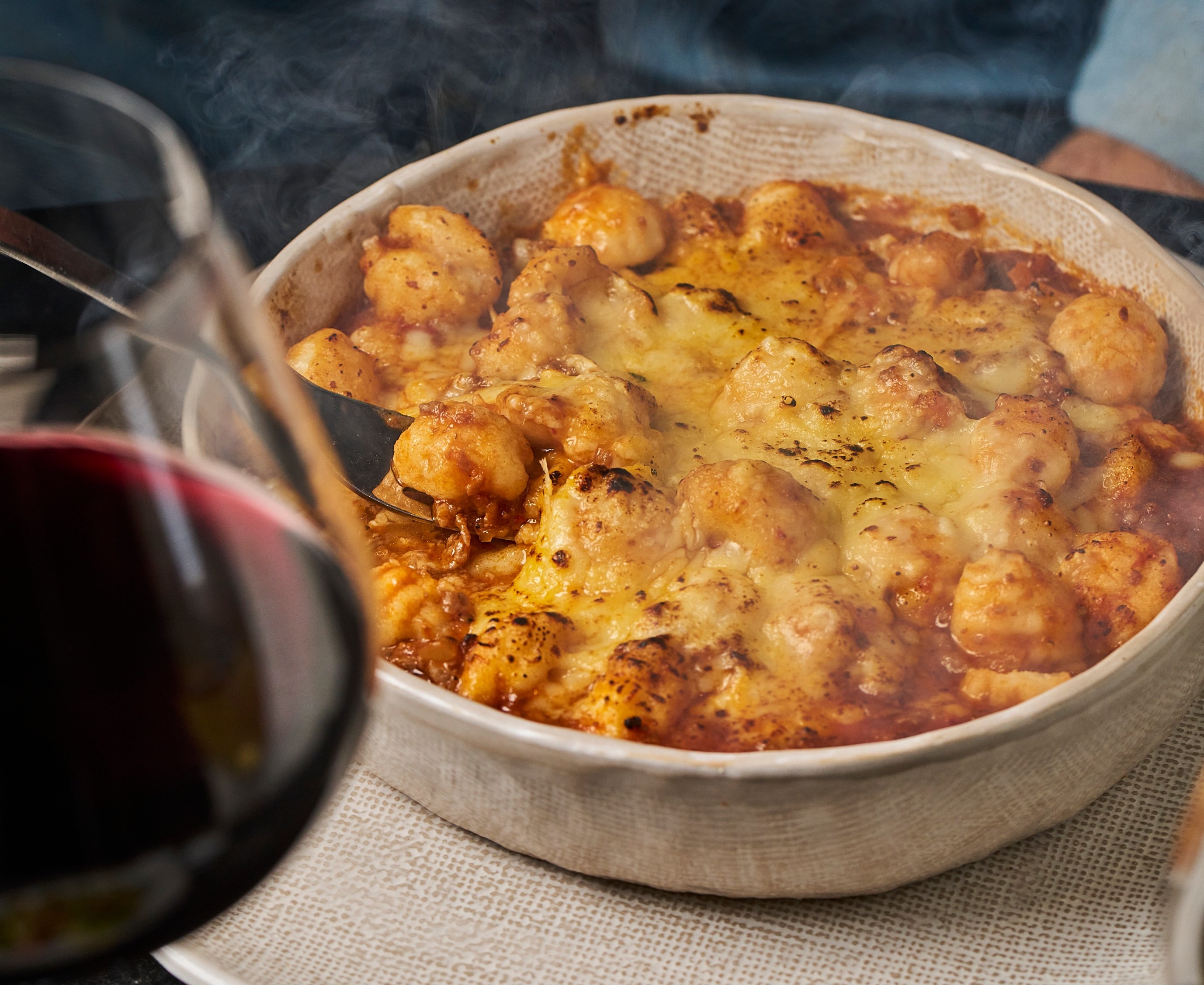 Para celebrar el Día de la Pasta, El Retorno, la clásica parrilla de Villa Adelina, presentará un plato fuera de carta ideado por el chef Diego Colman: un pan de campo horneado en el propio local al que se le extrae la miga y se rellena con gnocchi de papa caseros, servidos con generosa salsa a elección del comensal —salsa rosa, cremosa de quesos o con hongos y verdeo— pensado para compartir y sorprender. La propuesta une la rusticidad del pan hecho en casa con la delicadeza de los gnocchi artesanales y los sabores contundentes que definen al restaurante, que mantiene su sello en cortes a la parrilla, milanesas generosas, achuras y porciones abundantes en un salón cálido y familiar.